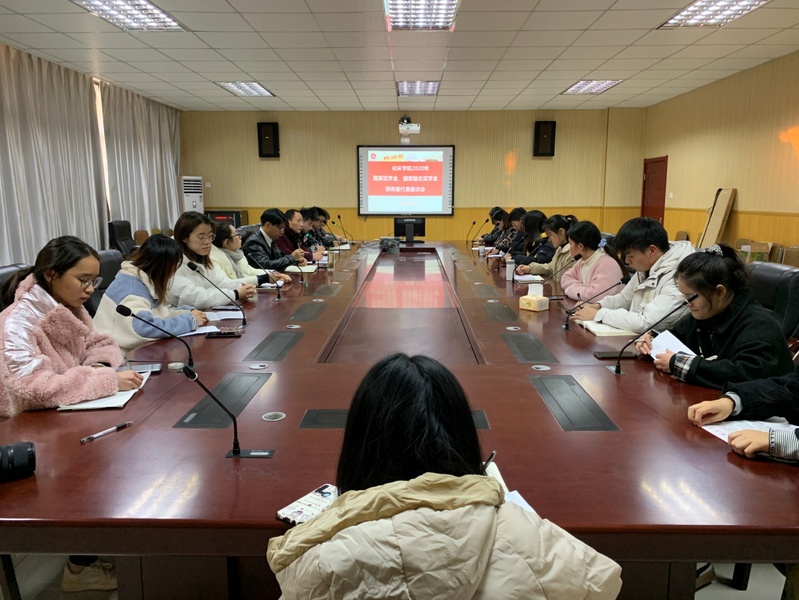 2020年12月4日下午,公司召开2020年国家奖学金、国家励志奖学金获奖者代表座谈会。来自全院各个年级和专业的获奖者代表共14名同学参加座谈会,公司党委书记水心宝、党委副书记胡承功以及院团委书记和全体辅导员老师参加会议。会议由胡承功主持。