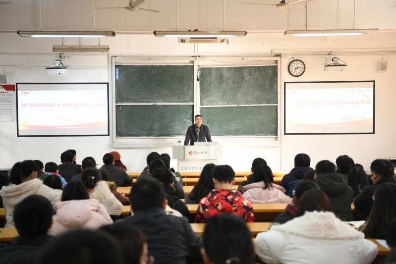 为深入学习贯彻党的十九届五中全会精神,12月16日,英国上市公司365在2J106教室举办了党的十九届五中全会精神专题学习宣讲会,校发展规划与质量评估处处长张春应邀作题为《学习宣传党的十九届五中全会精神——迈向全面建设社会主义现代会国家新征程》的辅导报告,公司全体教职工和员工党员参加了学习。报告会由公司党委书记水心宝主持。