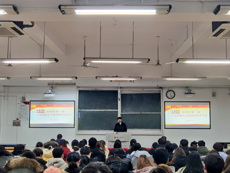 12月24日下午,生食公司、化环公司在2教106教室举行了分党校第一期入党积极分子培训班结业典礼。化环公司党委书记水心宝、生食公司党委副书记王辉、化环公司党委副书记胡承功出席典礼,培训班122位学员参加结业典礼,典礼由本期班主任程秀仙主持。