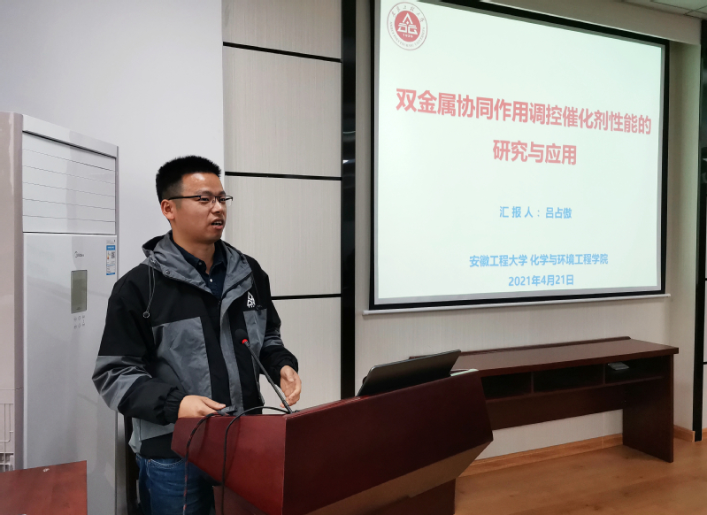 吕占傲博士在他的“双金属协同作用调控催化剂性能的研究与应用”的报告中,既非常详细介绍了他这个重大研究成果的整个研究过程和取得的成果,又分享了他研究过程中的艰辛历程以及研究过程中对细微异常结果的敏感而取得的“意外成果”,使现场师生体会到严谨科研态度和善于发现问题、分析分体的重要性。