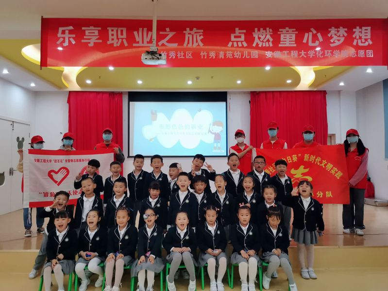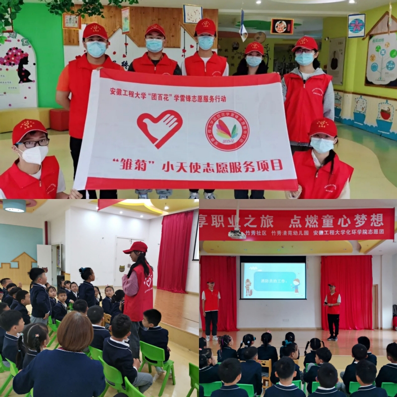 为响应英国正版365官方网站“百花献礼”暨党史学习教育劳动月活动号召,推进新时代青年积极践行“奉献、友爱、互助、进步”的志愿精神,2021年5月19日,化环公司“雏菊”小天使志愿服务团队于竹秀社区幼儿园开展了一堂以“形形色色的职业”为主题的兴趣课。