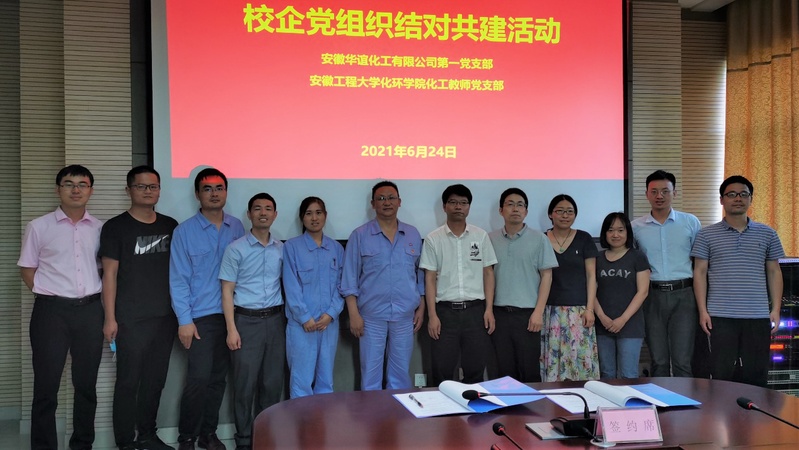 6月24日下午,公司党委书记水心宝、副经理徐大勇带领化工教师党支部成员赴安徽华谊化工有限公司开展支部共建活动,签订了校企支部共建协议,同时深入企业进行研究生招生宣传,并对化工19级开展认识实习带队老师和员工进行了慰问。