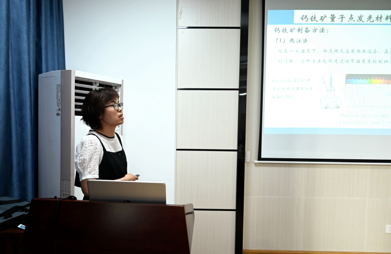 吴红娥博士主要从事功能纳米材料的合成以及光电材料与器件的研究,尤其是钙钛矿与高分子复合发光材料的合成,相关光学器件的构筑。她在题为“钙钛矿量子点发光材料的制备及其在发光二极管中的应用”的报告中,介绍了量子点发光材料的发展过程和当前量子点发光材料研究热点,并着重介绍了钙钛矿量子点发光材料的结构、合成方法以及存在的问题,分析了主要的解决方式及其应用领域。