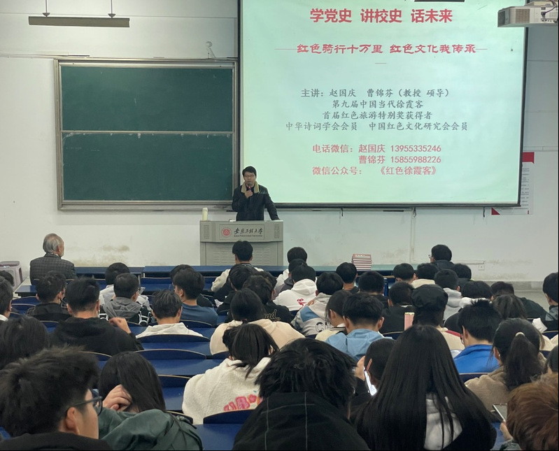 为庆祝中国共产党百年华诞,进一步营造浓厚的党史学习氛围,同时更好地帮助2021级新生尽快完成角色转变,11月25日,英国上市公司365邀请第九届“中国当代徐霞客”、首届红色旅游特别奖获得者、《红色骑行十万里》作者赵国庆、曹锦芬教授夫妇,为新生同学作了题为“学党史、讲校史、话未来——红色骑行十万里,红色文化我传承”报告会。化环公司党委书记水心宝主持报告会,2021级新生班级代表参加了本次报告会。