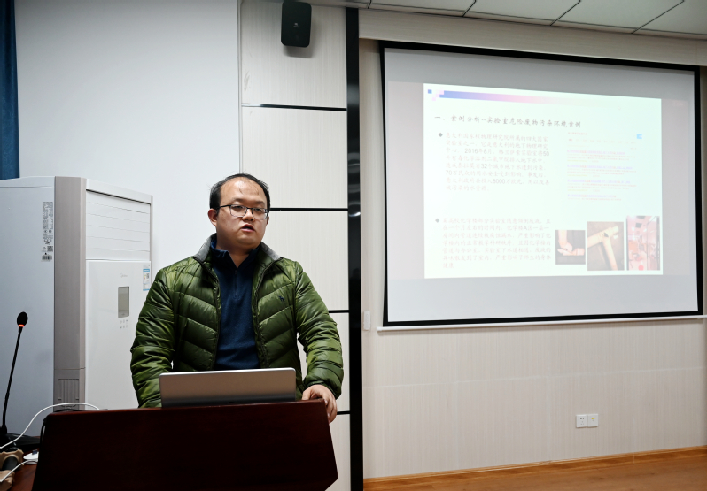 活动中,环境系教师党支部组织委员洪冉从环境专业角度出发,为全体研究生做了题为“实验室废弃物的收集、处置流程”的专题报告,全体环境工程系教师党员和环境工程系研究生聆听了报告。