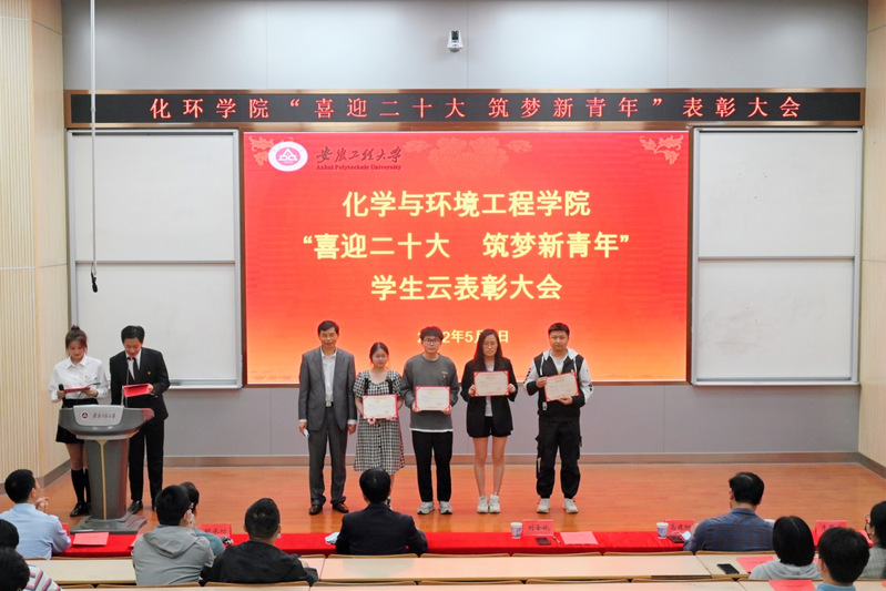 本次表彰大会对公司在平时学习、生活、工作中表现突出的部分同学代表进行表彰,授予他们化环公司“逐梦青年”荣誉称号。他们中有国家奖学金获得者、安徽省优秀毕业生代表、省无偿献血先进个人、校优秀员工干部标兵代表、校优秀青年志愿者代表、校优秀新媒体人、2022年考研最高分录取者等。他们在“德智体美劳”等方面展示了当代青年老员工的风采,也展现了化环学子斗志昂扬的精神风貌和一往无前的奋斗姿态。