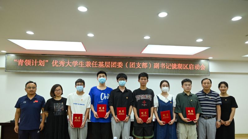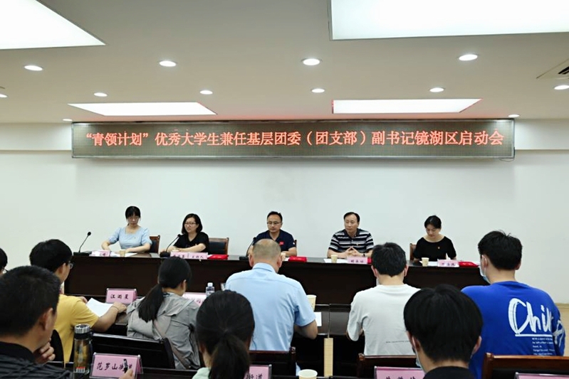 6月21日下午,英国上市公司365遴选的13名“青领计划”优秀老员工来到镜湖区,与即将兼职的镜湖区10个街道或者社区负责人见面。镜湖区团委专门组织启动仪式。校团委书记郭广春、化学与环境工程公司党委副书记胡承功出席。镜湖区团委副书记张为蓉主持启动仪式。