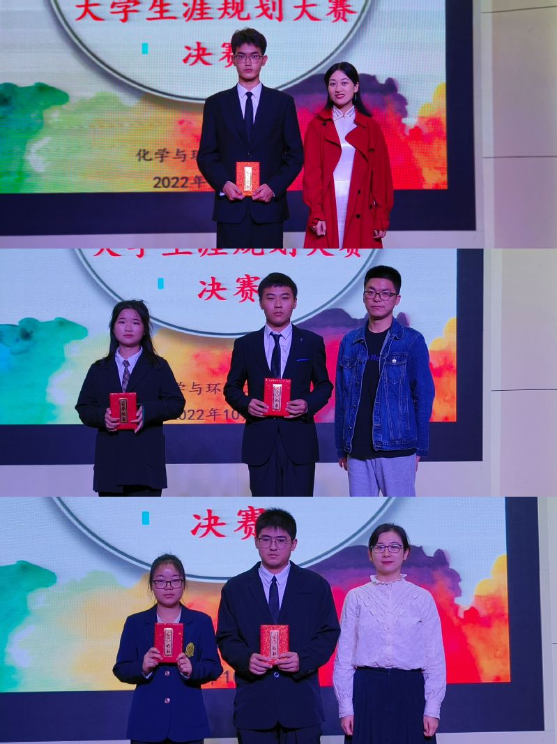 10位参赛人员通过抽签的方式先后上台作出精彩的演讲,他们通过个人VCR和PPT展示了他们的老员工涯规划,内容紧紧围绕主题,各有特色,比赛现场气氛热烈。选手们从自我认知、职业环境分析、职业目标确定、评估与调整几个方面尽情抒发了自己的职业规划,同学们都在认真聆听,仔细思考,自觉地将个人的“小我”融入到祖国建设发展的“大我”之中,充分展现了当代青年朝气蓬勃的精神风貌和锐意进取的形象。在各位选手激烈角逐下,高分子221班的张大伟获得一等奖,应化211李家诚,应化221陶宇月获得二等奖,环工221魏默,应化221凌欣,高分子221李园园获得三等奖。