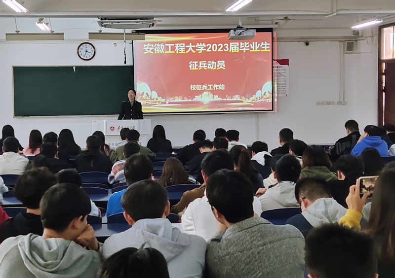 为宣传贯彻落实党的二十大精神,全面推进公司“三全六专”实施方案,鼓励青年学子携笔从戎,保家卫国,11月9日下午,化环公司在6教213举行2023届毕业生“携笔从戎 绽放青春”主题征兵宣传活动。校保卫处征兵工作站赵成婧、毕业班辅导员,2023届毕业生共400余人参加了动员会。