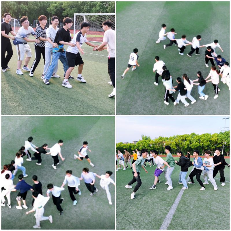 穿越时空隧道,追忆童年时光,绿荫场地上同学们排好队伍蓄势待发,辅导员老师宣读游戏规则,一声哨响游戏开始。当作小鸡的同学们紧紧拽着前面同学的衣襟躲在母鸡身后,灵活的老鹰一会儿跳起,一会儿蹲下,一会儿左冲,一会儿右击,身强力壮鸡妈妈努力遮挡老鹰的四面袭击,各支队伍虚招实招交替使用,游戏活动在同学们的欢声笑语中愉快进行。