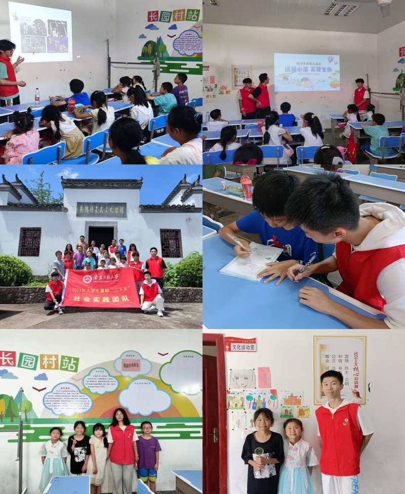 蒲公英乡村实践团队来到宣城市泾县长园村儿童服务站,围绕爱国教育、安全宣讲、趣味知识等方面开展以“促进儿童健康成长”为主题的支教活动,为进一步增强孩子们假期安全防范意识,减少和防范安全事故的发生,志愿者们分别从未成年人保护、防止电信网络诈骗和暑期防溺水三个方面为孩子们暑期安全保驾护航。趣味课堂上,团队成员还结合自己专业所学知识为孩子们讲述生活中的“高分子”,以塑料袋、水杯等生活中常见的物品为例,为孩子们科普了化学趣味知识。
