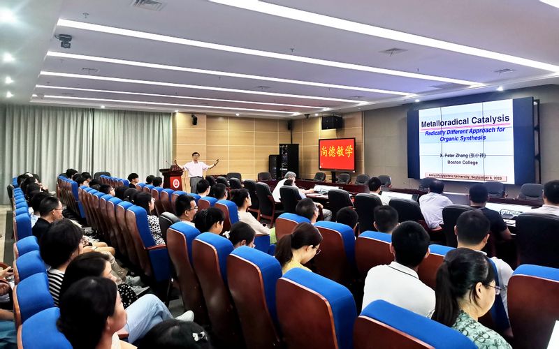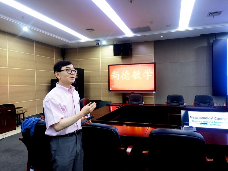 张小祥教授做了题为“Metalloradical Catalysis (MRC): Radically Different Approach for Organic Synthesis”的报告。报告介绍基于金属-卟啉配合物的不对称“金属自由基催化”反应(MRC)。通过设计并合成一系列手性金属-卟啉自由基催化剂,将金属自由基催化(MRC)应用于立体选择性的环化反应、C-H官能化反应、串联反应等,并成功应用于构建复杂结构的功能分子。