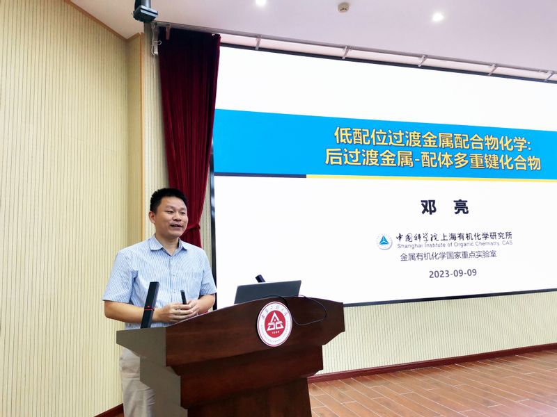 邓亮教授以“低配位过渡金属化学:后过渡金属-配体多重键化合物”为题作了精彩的报告。邓教授在报告中介绍其课题组通过控制金属中心配位数和氧化态的策略,以大位阻卡宾、膦为配体在不同价态和不同自旋态的铁、钴末端亚胺基化合物、卡拜配合物以及一价钯胺基化合物的合成、表征和反应性质研究方面的研究成果及所取得的进展。