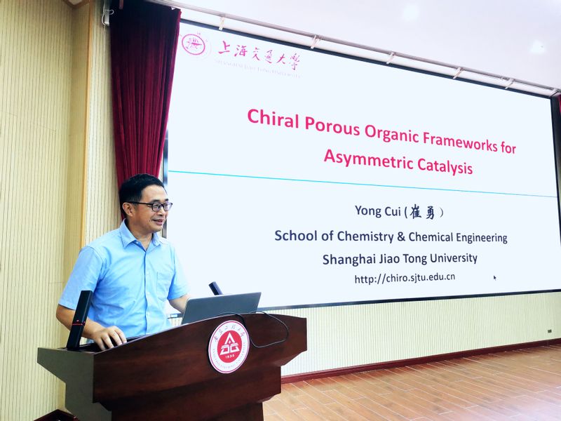 崔勇教授作了题为“Chiral Porous Organic Frameworks for Asymmetric Catalysis”的精彩报告。报告详细介绍了其课题组致力于通过手性MOF的策略来实现手性小分子催化剂的固相化,并聚焦于新型CCOFs的设计合成与及功能应用,以手性优势配体作为平台,开发出结构新颖、性能独特的CCOFs,研究其催化、分离等性能,还利用配位组装的方法将优势手性配体与金属组装并制备出手性的金属-有机组装体,部分研究成果已经产业化。
