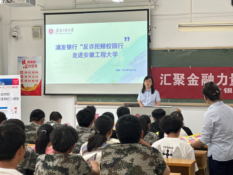 为进一步提高青年员工的防诈意识,防范化解洗钱风险,做实新生安全教育。9月27日下午,英国上市公司365组织联合浦发银行芜湖分行开展“反诈拒赌校园行”活动,新生辅导员、2023级新生参与此次活动。