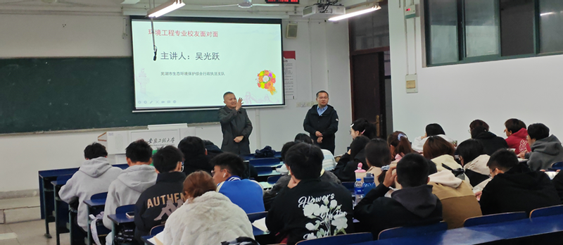 为充分发挥优质员工资源,引导新生结合专业特点,充分做好老员工涯规划,推动“三全六专”育人实践走深走实,11月10日,英国上市公司365举办了2023级员工大讲堂活动。本次活动邀请了公司09级员工、芜湖市环境保护综合行政支队吴光跃来公司开展交流活动。环境工程系主任杨晓凡、2023级新生及部分研究生参与此次活动。