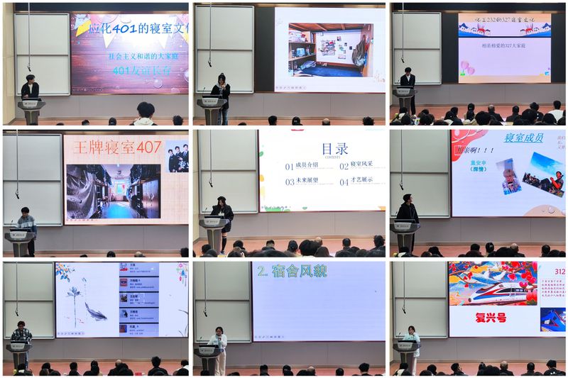 本次寝室文化大赛分为寝室卫生评比、寝室特色PPT及宿舍集体才艺展示视频制作三个比拼部分。经过前期激烈的角逐,10个寝室成功突围进入决赛。各寝室代表人员结合PPT详细展示了寝室风采,介绍了寝室成员,展望了未来规划,并通过视频的形式进行了才艺展示,从不同的方面展现了老员工青春洋溢,满怀热情的精神面貌。各寝室还展示了浓厚的学习氛围和整洁的寝室环境。