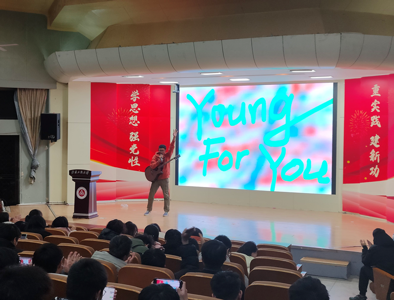 日月开新元,万象启新篇。精彩的节目从一首坦荡的《王招君》拉开帷幕,一首热血沸腾的《无名之辈》激起青年奋斗之心,一首《都怪我》唱响音乐的流量密码,《等你下课》、《Young For You》、《老男孩》等歌曲点燃现场气氛,激发了同学们昂扬的青春斗志。