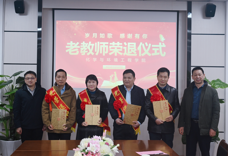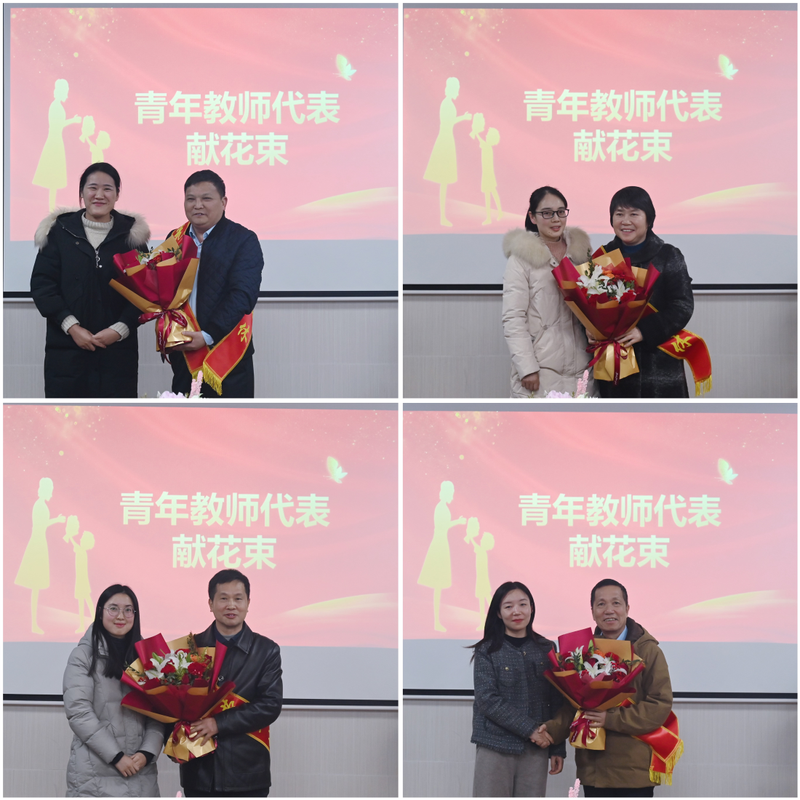 仪式上,与会领导为荣退教师颁发荣退荣誉证书。青年教师为荣退教师献上花束。
