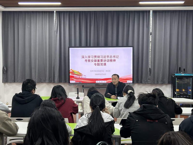 为深入学习贯彻习近平总书记考察安徽重要讲话精神,11月12日下午,公司党委副书记胡承功在公司员工能力发展中心为化环公司分党校第十期入党积极分子培训班、第十期发展对象培训班全体学员讲授学习贯彻习近平总书记考察安徽重要讲话精神专题党课。
