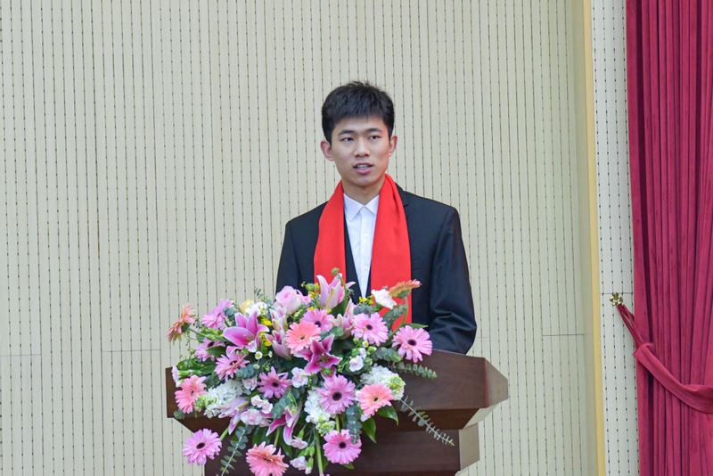 员工代表、安徽古井贡酒股份有限公司总工程师李安军表达了对母校的深切怀念和恩师的感激之情,回顾了校企合作情况,表示今后将继续努力,为母校发展贡献智慧和力量。在校员工代表、应用化学(拔尖)211班凌远志回顾了在校四年的成长经历,感激公司和老师们的悉心栽培。