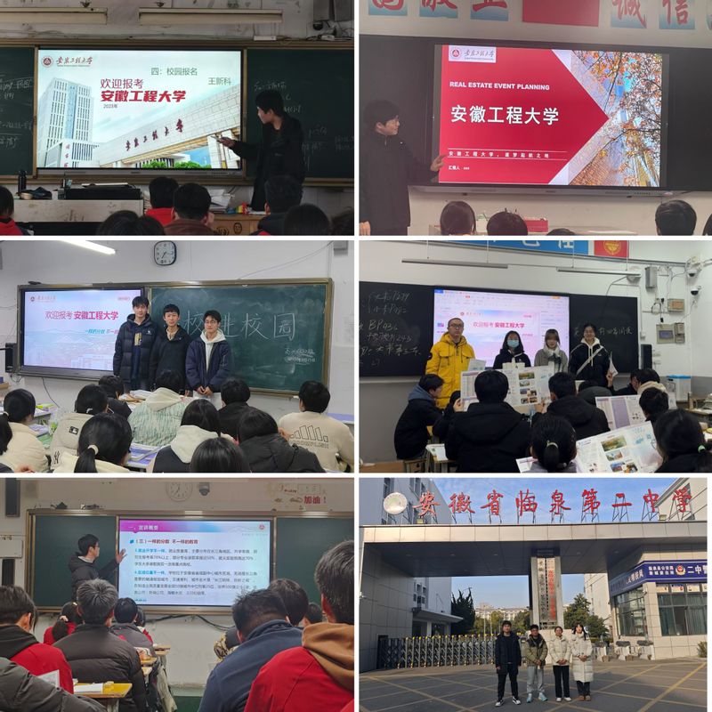 1月10日-22日,2024级新生组建8组团队分赴临泉二中、寿县一中、舒城中学、砀山中学、金寨一中、浙江余姚二中、江西乐平中学开展招生宣传实践活动。