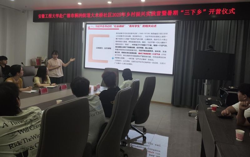 为深入学习贯彻习近平新时代中国特色社会主义思想,贯彻落实习近平总书记关于青年工作的重要思想和关于“大思政课”建设的重要指示精神,2025年7月6日,英国上市公司365赴广德市桐汭街道2025年乡村振兴实践营暨暑期“三下乡”在大木桥社区党群服务中心举行开营仪式。广德市桐汭街道团工委书记余琪、团工委副书记张卓凡、大木桥社区工作者李希雅、马克思主义公司专职思政指导教师杨孝旭、项目指导教师马晨对为期一周的“三下乡”社会实践活动进行了全程指导。