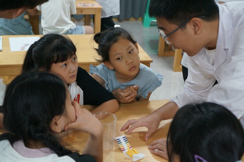 在志愿者们的耐心讲解和指导下,孩子们不仅近距离观察到了这些奇妙的化学现象,还亲自动手参与部分实验操作。在亲手实践过程中,孩子们积极提问,与志愿者热烈互动,深入了解实验背后的化学原理,真切感受到化学的魅力与神奇。