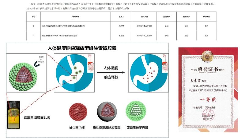 徐大勇介绍了公司团队力量,公司与企业合作的形式,公司产业教授和科技副总政策。张荣莉、张翠歌就企业提出的具体技术需求,回应了团队储备的相关技术。夏春苗介绍了团队在乳液法制备微胶囊领域有10余年的研发经验和积累,研究的《维生素前驱体β-胡萝卜素微胶囊的制备及应用》获安徽省教育厅高校自然科学重点项目并予以结题,同时表示将进一步努力推动科技成果从“上书架”到“上货架”的转化。
